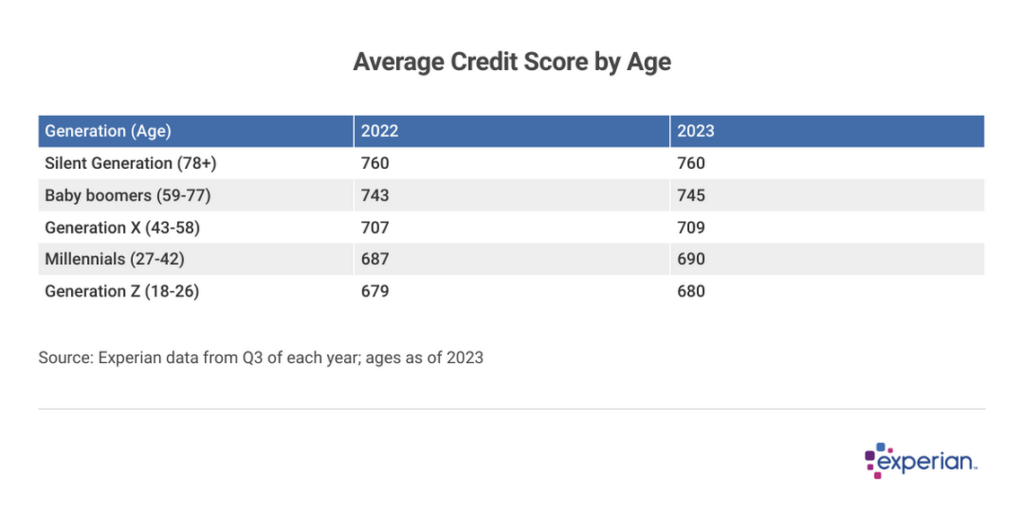Average credit scores by age increase slightly for most